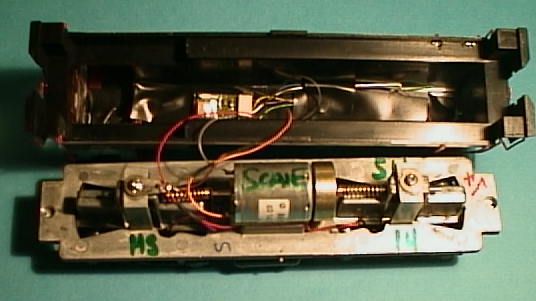 Before we start here are two pictures of the S-12 before started the conversion. The picture after conversion looks exactly the same as we made NO exterior modifications to the shell or locomotive. This first picture shows the S-12 just out of the box. The following picture shows the locomotive with the shell removed -- i.e. the mechanism. The S-12 does not have an NMRA DCC socket built in from the manufacturer, but it is a very easy locomotive in which to install a decoder because the mechanism is so open. Basically the steps to install a decoder in this locomotive are: