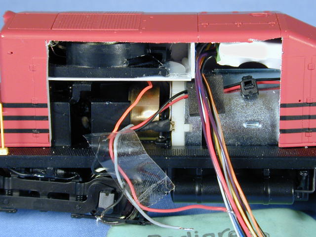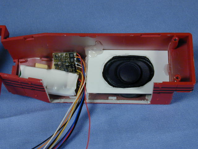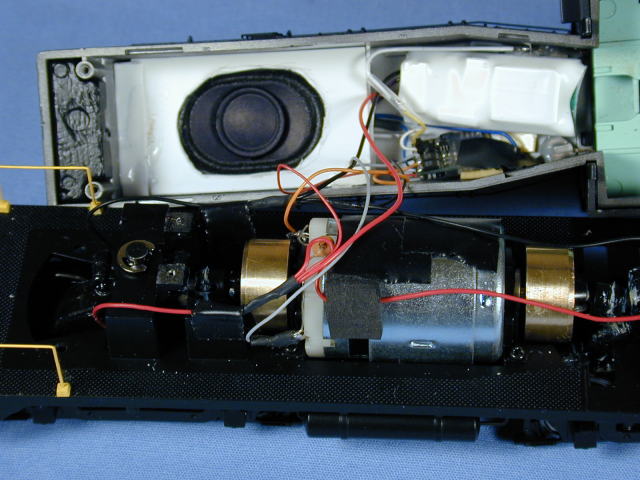 It couldn't be any easier! Installing DCC + Sound We were interested in our SW-1's having both DCC and sound. So Don Thompson of S Helper Service challenged us to install both DCC and sound in the available space. We eagerly accepted, and set a goal to have a pair of them running with sound on the Bristol Club's modular layout at the huge railroad show in Springfield, MA the first weekend of February 2000. We knew that space would be tight, particularly since the SW-1 shell is almost an inch shorter in length than it's brother the SW9/1200. And of course we wanted sound in the loco, not in a trailing sound car. And finally we preferred to have our sound without having to make modifications to the shell, such as drilling fine holes in grill work to allow sound to escape. In order to accomplish this task we decided to use the following:
