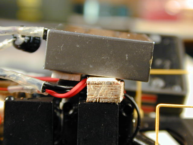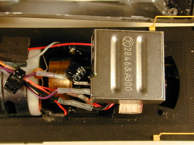 Then use a motor tool with a cut-off wheel (be sure to use eye protection) to remove the four mounting posts in the top of the shell --- two shorter mounting posts where the E-unit screws went in, and two longer mounting posts where the spring assembly wrapped around. From here on it was a little different. Remember to use shrink tubing over all solder joints to insulate the connection! Michael's Installation approach Here are the specific steps Michael used in his installation: